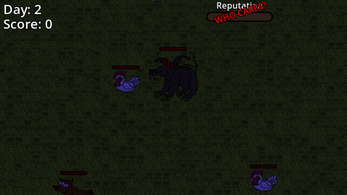 Oplo moves around using the WASD keys and interacts with others using the E key. During the day, your objective is to keep your reputation. During the night, the same E key is used for biting other animals, including the ones who bite back. Be careful not to get killed, you want to impress more animals the next day!